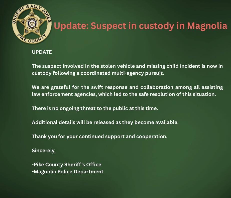 Pike County Sheriff’s Office Suspect In Custody Update--Tuesday, February 24, 2026